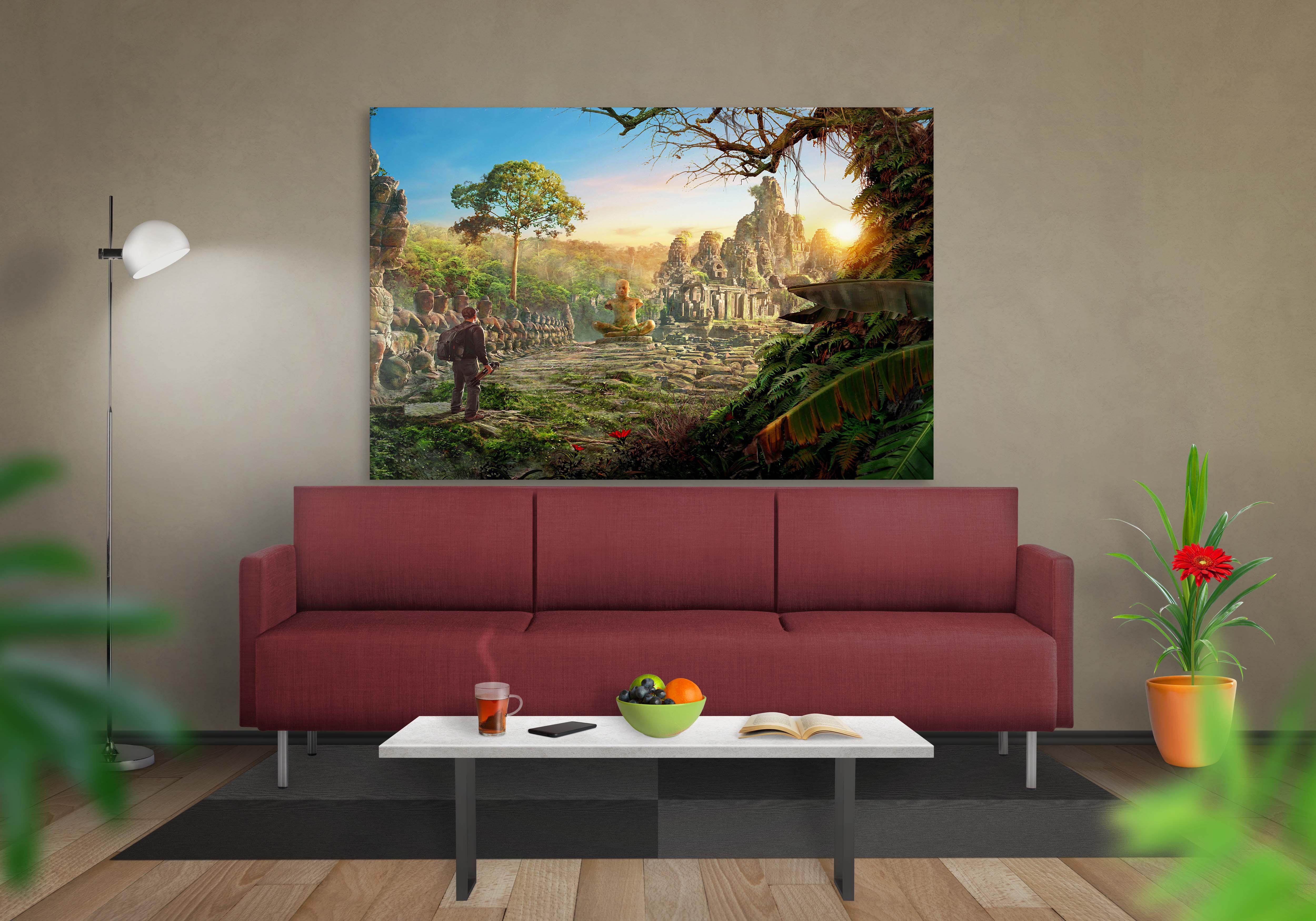 By marrying digital animation with the awe of the Angkor Wat, Vincent Soun creates a Masterpiece that brings a piece heaven into your home. Some scholars believe the Angkor Wat is a recreation of Mt. Meru — the location of Heaven on Earth. Others believe it is where the story of the Garden of Eden may have originated when the modern day North Pole was a tropical paradise. Whether Mt. Meru existed on the North Pole; near Mt. Himalaya; or rise amongst the highest mountains in Tanzania, Africa — NOW you can add a piece of heaven to any home decor.